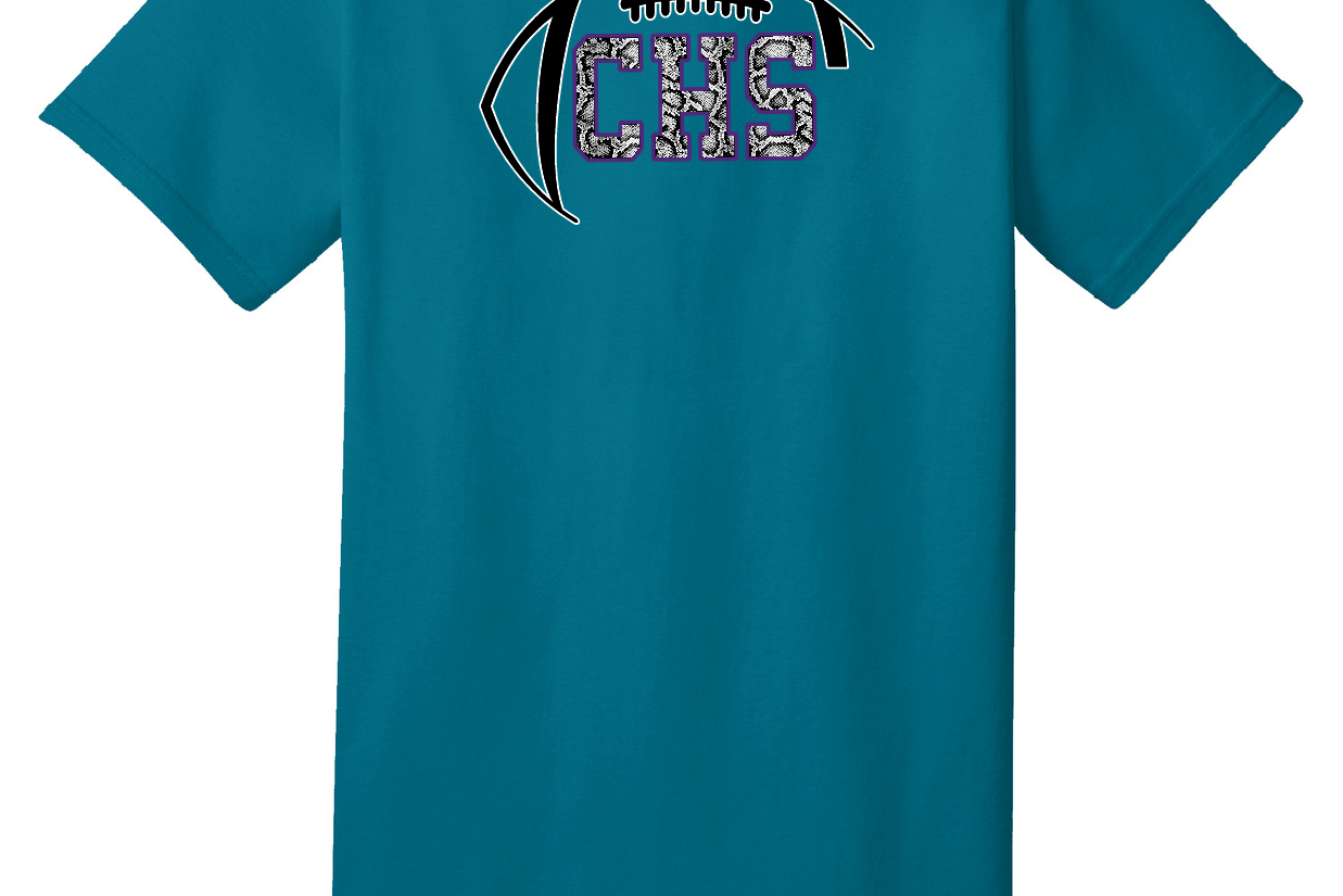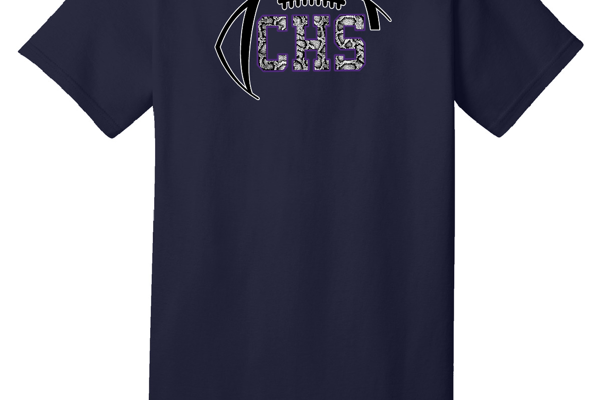 - 50/50 cotton/poly (Dark Heather Grey, Heather Navy)