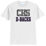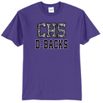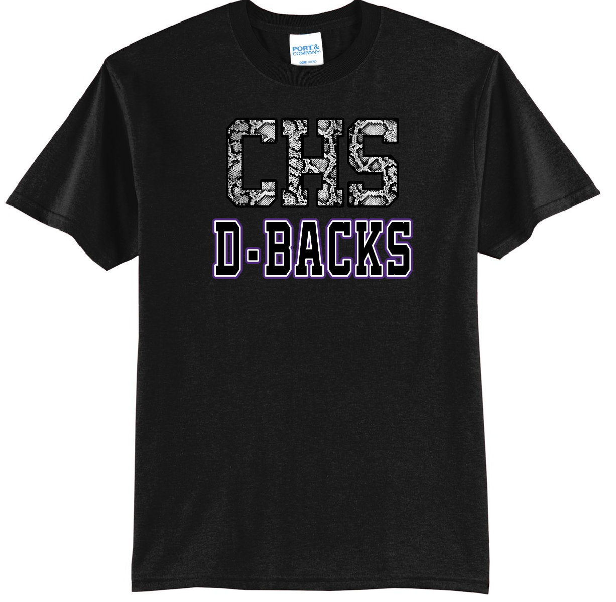 - 50/50 cotton/poly (Dark Heather Grey, Heather Navy)